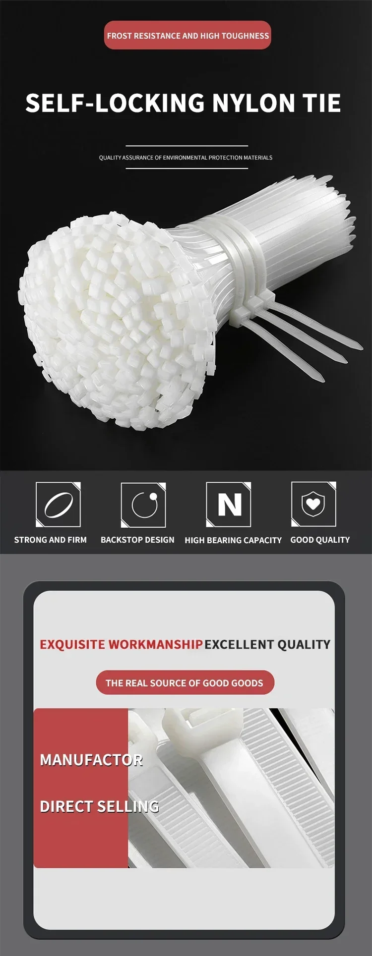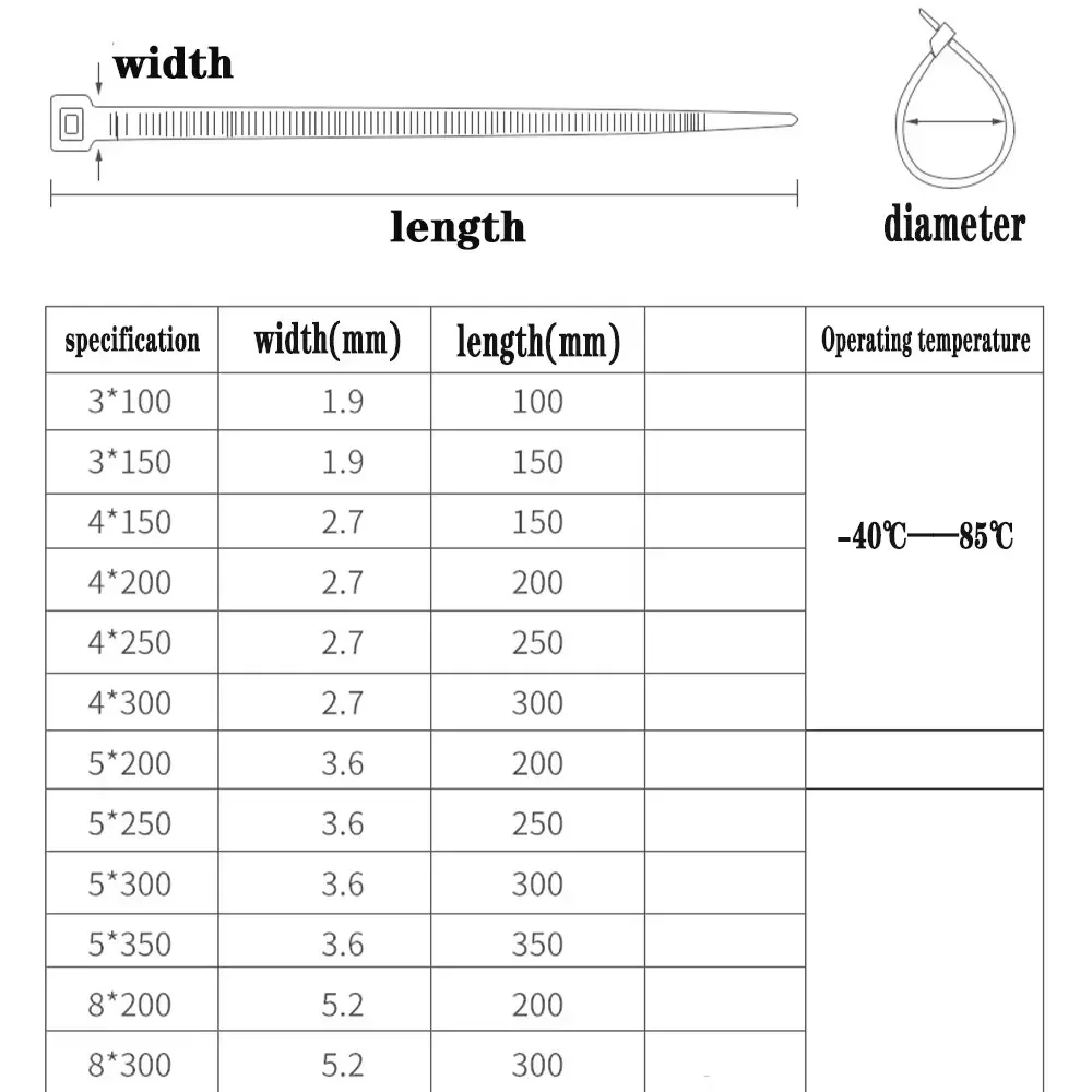 500/1000PCS Self-locking Plastic Nylon Tie Black Zip Wraps Strap Nylon Cable Tie Set Fastening Ring Loop Wire Wrap
